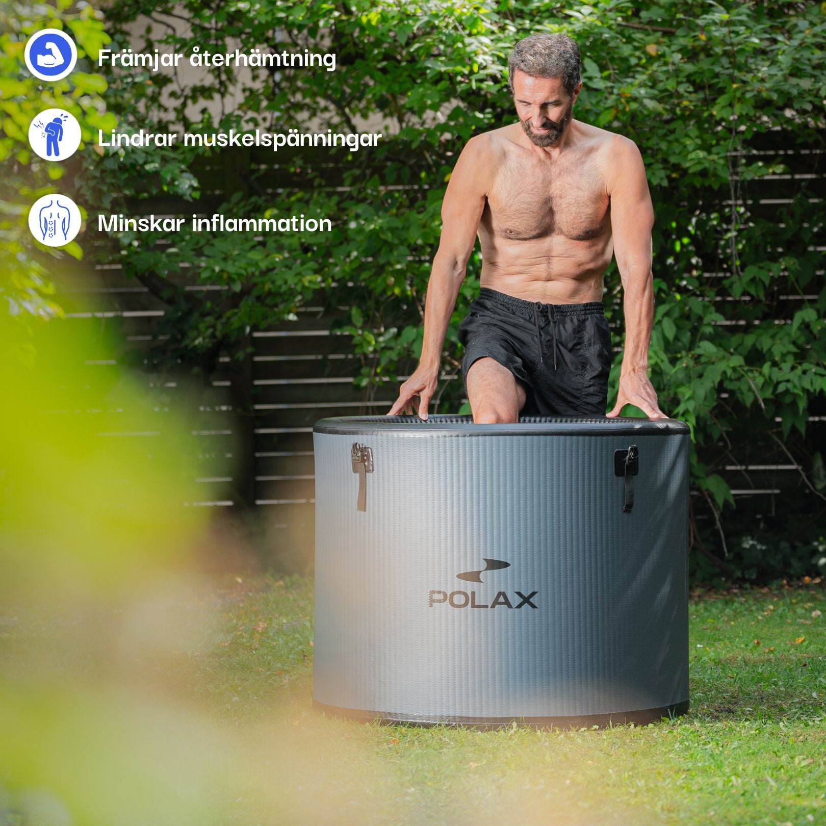 Ja, isbadet är designat för utomhusbruk året runt. För optimal hållbarhet bör du vidta försiktighetsåtgärder vid kraftig frost och överväga att ta in det. Använd alltid det medföljande överdraget och spänn fast det för att skydda mot vind och väder. Placera isbadet i skugga och i lä för att minimera påverkan från sol och vind.